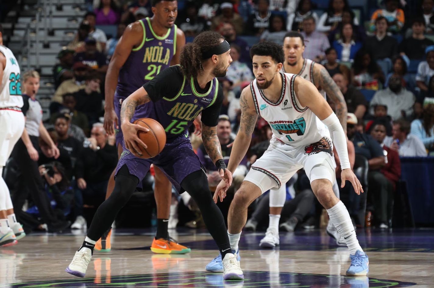 В составе победителей отличились Джа Морант (32 очка) и Десмонд Бейн (30 очков). У проигравших больше всех очков набрал Трей Мёрфи (27), а Хосе Альварадо (11 очков, 11 передач) и Карло Маткович (13 очков, 11 подборов) записали на свой счет по дабл-даблу.